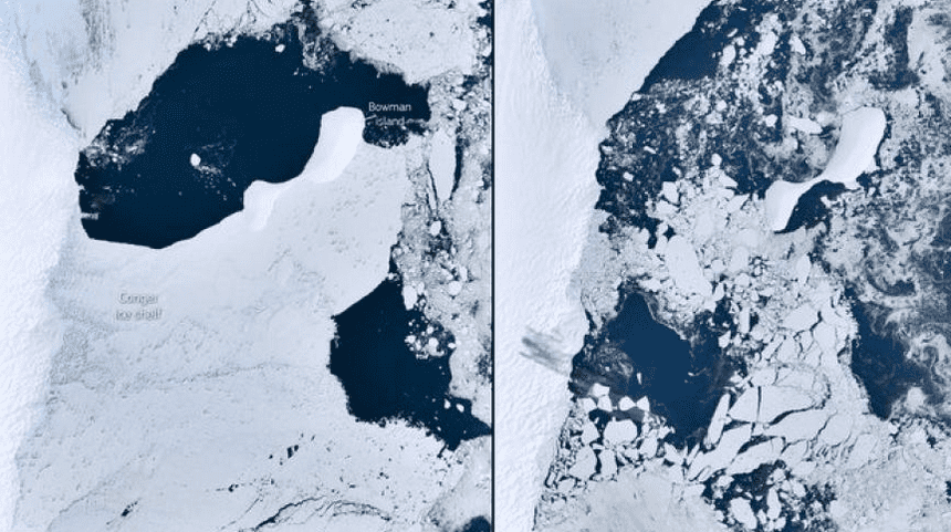 O artigo acrescenta que, embora nem tudo o que acontece na natureza se deva apenas ao aquecimento global, o colapso da plataforma de gelo de Conger, entre outros, é a continuação de uma “tendência preocupante”.